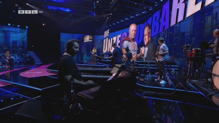 - Punkteanzeigen und Buzzer für Spielpulte Stefan und Elton sowie Kandidaten